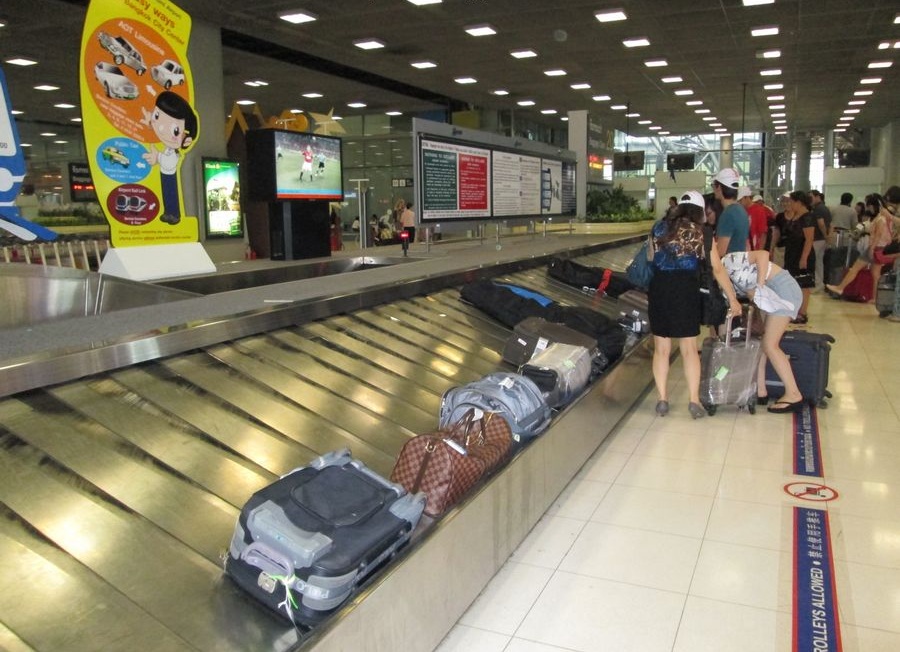 Tại vị trí kiểm soát của nhân viên an ninh, băng tải cũng được áp dụng một đoạn ngắn để đưa các loại hành lý nhỏ (túi xách) qua máy quét.
